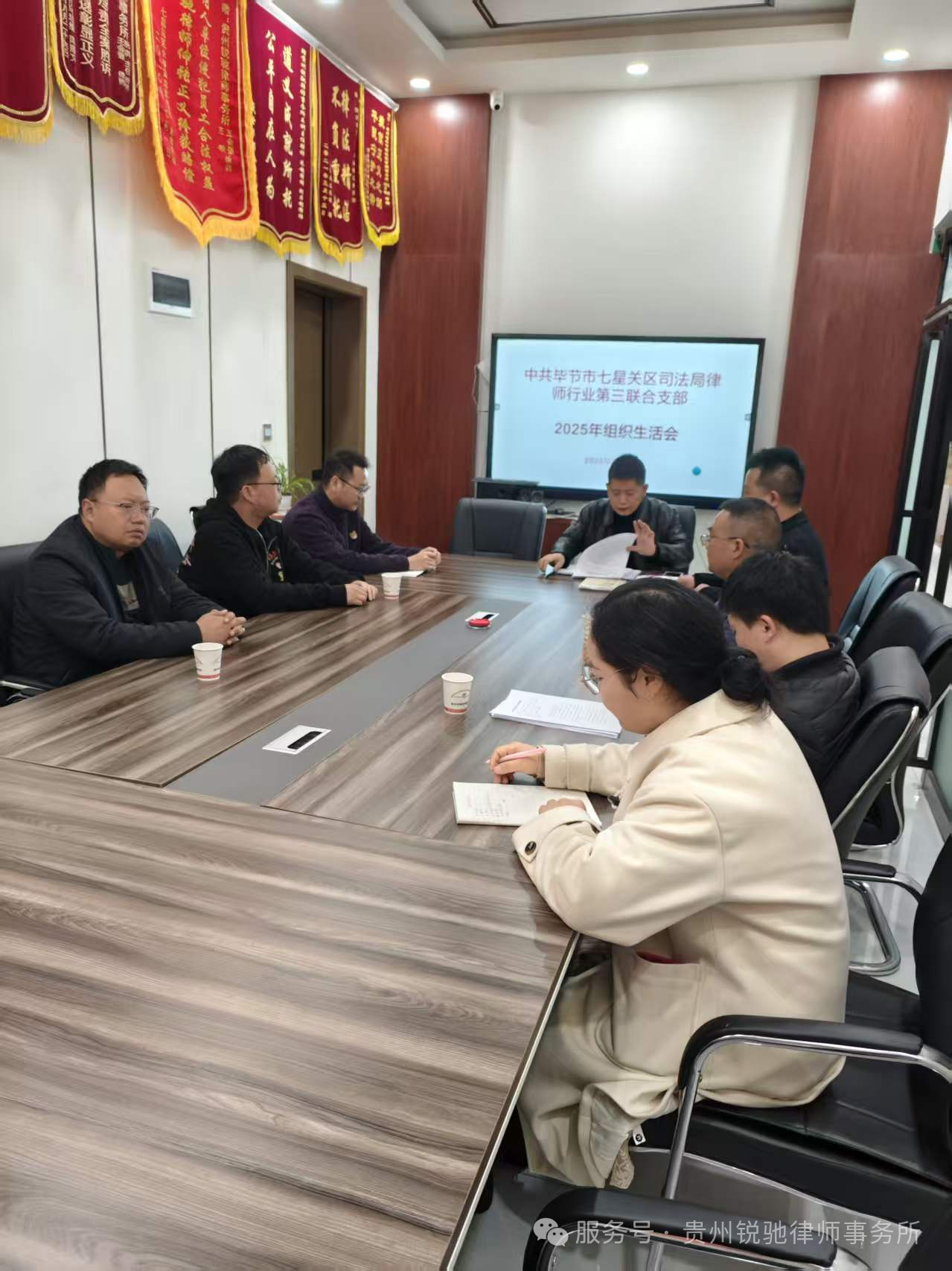 为深入学习贯彻习近平新时代中国特色社会主义思想和党的二十大和二十届四中全会精神,严格落实毕节市七星关区司法局机关党委、毕节市律师行业党委部署要求,2026年3月27日,第三联合支部召开2025年度组织生活会,毕节市七星关区司法局党组成员、副局长、律师行业党委书记陈雷同志、七星关区司法局律工股陈建同志莅临指导。会议由支部书记王会强主持,除张涛同志因在贵定开庭请假外,支部其余党员均参会学习。